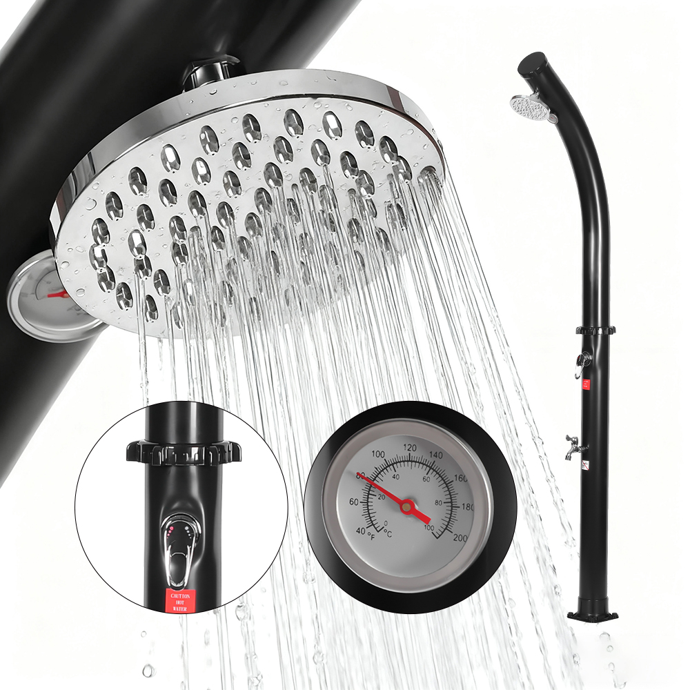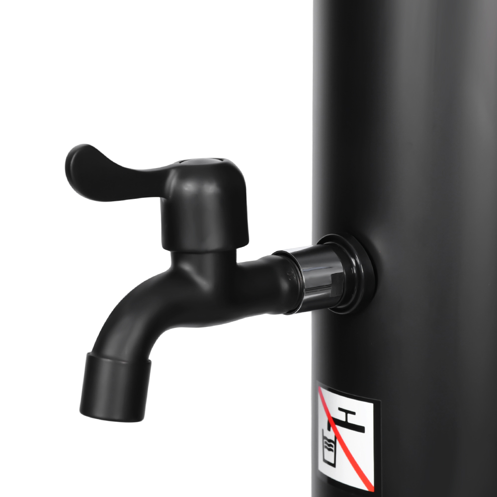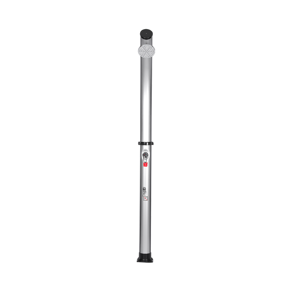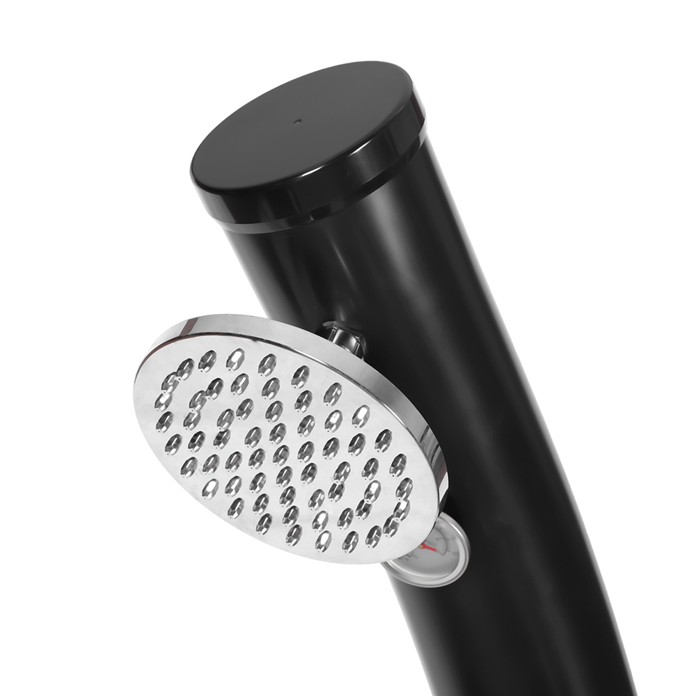 After filling the shower pipe via a garden hose, the water naturally warms up in the sun, and the integrated fitting allows for easy adjustment to your preferred temperature. Designed for versatility, this LY18L02 18L free-standing bend body outdoor solar pool shower with shower head is perfect for beachside outings, poolside relaxation, or countryside getaways, making it an excellent choice for hotels, holiday homes, and bungalows to provide refreshing comfort anywhere. It is also equipped with a convenient hose connection for effortless filling and a drain plug for quick emptying, ensuring safe and easy preparation for winter storage.