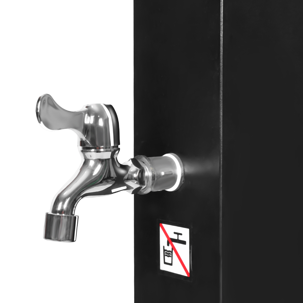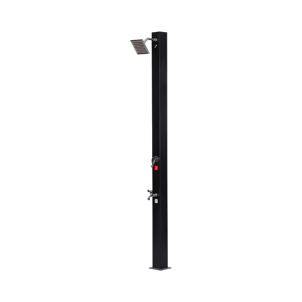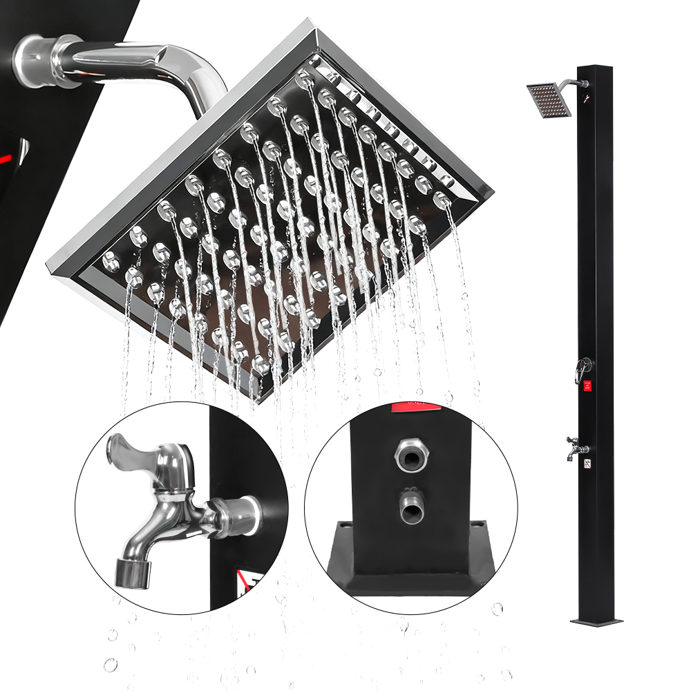 This LY18L08-SS adjustable integrated UV-proof solar shower is thoughtfully designed for both comfort and practicality. Its generously sized rain shower head, equipped with an integrated ball joint, can pivot up to 180°, allowing you to adjust the angle for an enjoyable and refreshing shower experience. Crafted from UV-resistant plastic, the unit is durable and can be quickly dismantled for easy transport or storage when not in use. The sturdy base, made of stainless steel, ABS, copper, and other reliable materials, ensures a secure and stable setup even on various outdoor surfaces. Using the shower is simple—just fill the shower pipe with a standard garden hose, let the sun naturally heat the water, and then use the integrated tap to adjust the temperature to your preference, creating a convenient and pleasant outdoor showering experience.