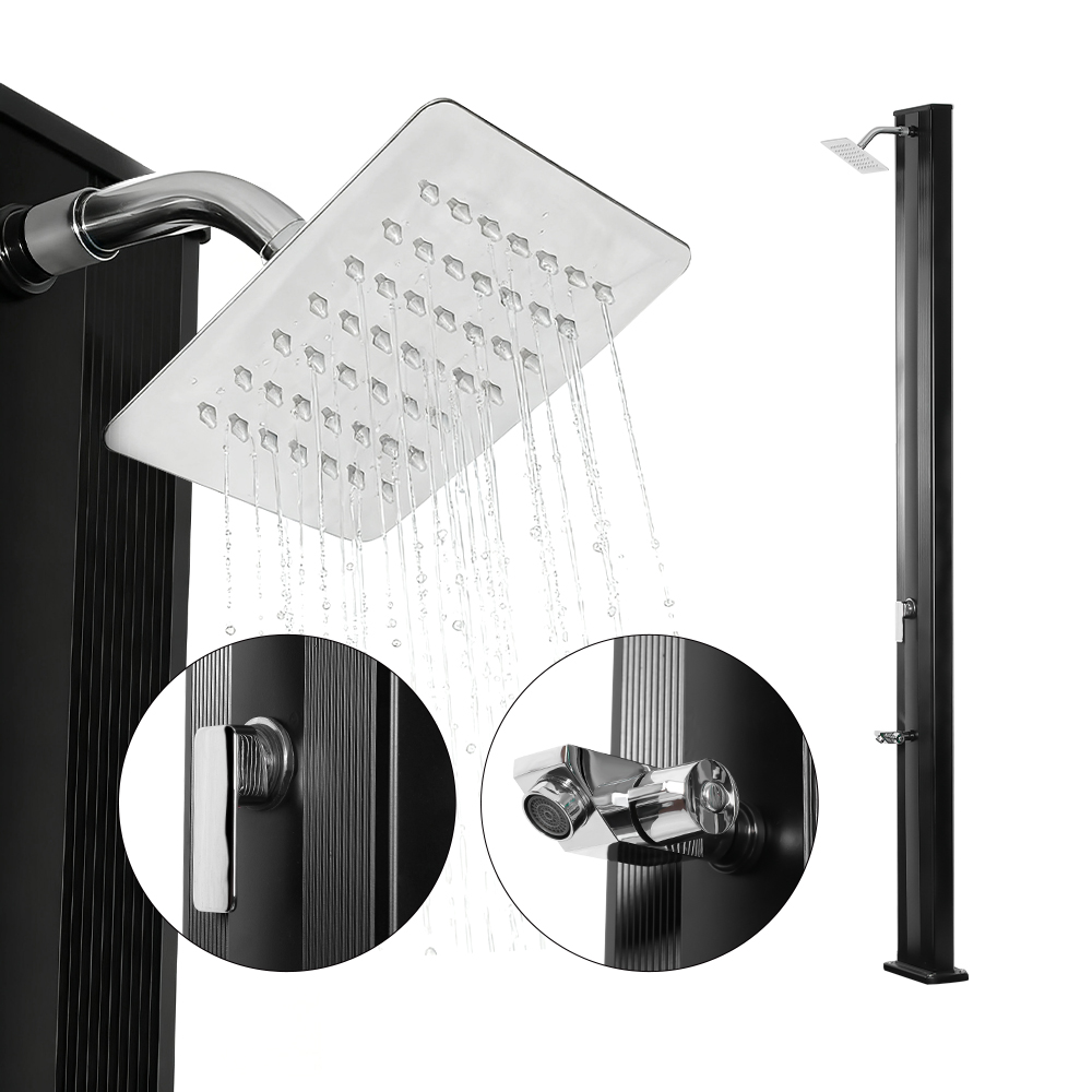 This LY30L02 outdoor rain shower head single-lever shower stand features a 30-liter aluminum shower pipe, providing ample water for a comfortable, refreshing shower experience, making it ideal for use in the garden or outdoors. The single-lever mixer tap allows for quick and easy temperature adjustment, allowing users to adjust the water temperature to their preferred setting. The large rain shower head features an integrated ball joint that swivels 180°, enhancing the cooling effect and simplifying installation, for added convenience and comfort.