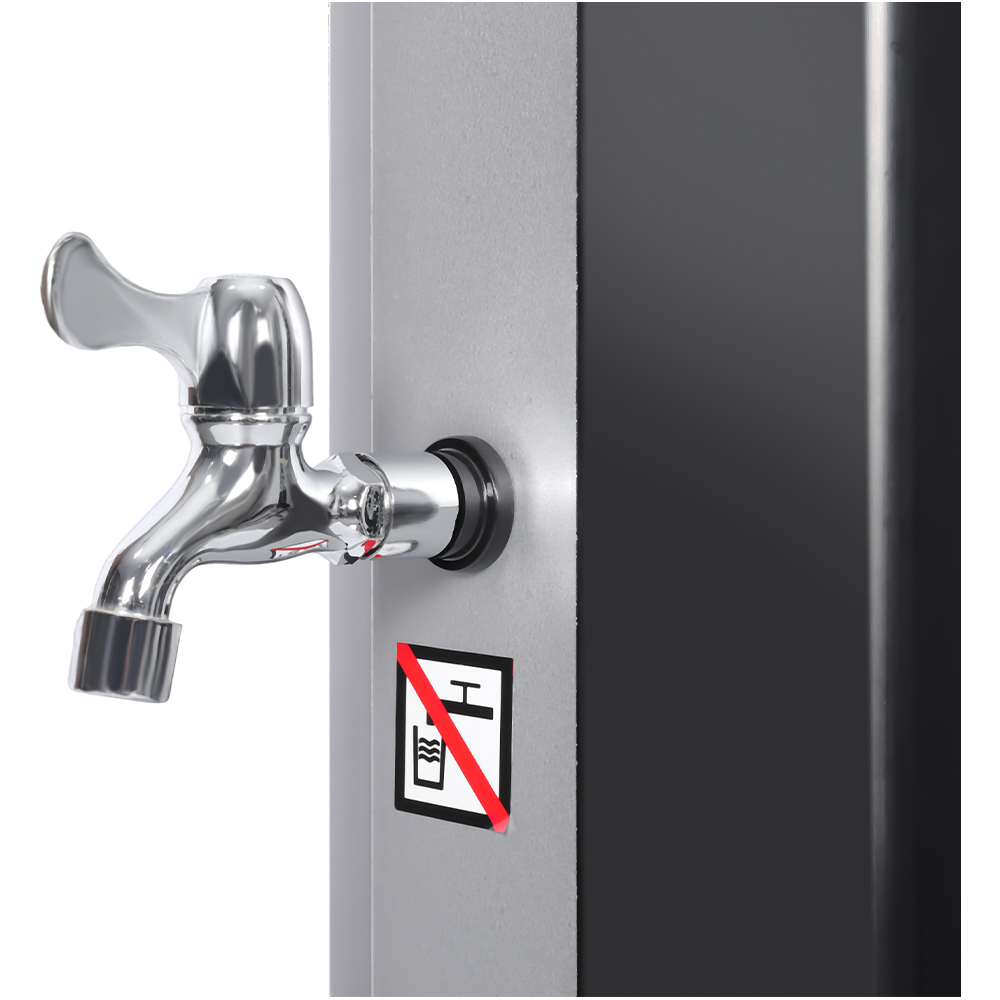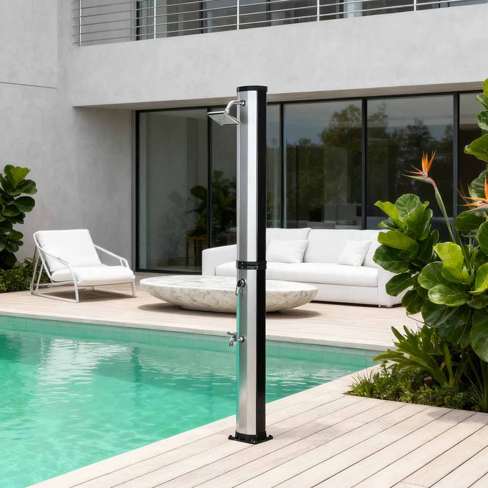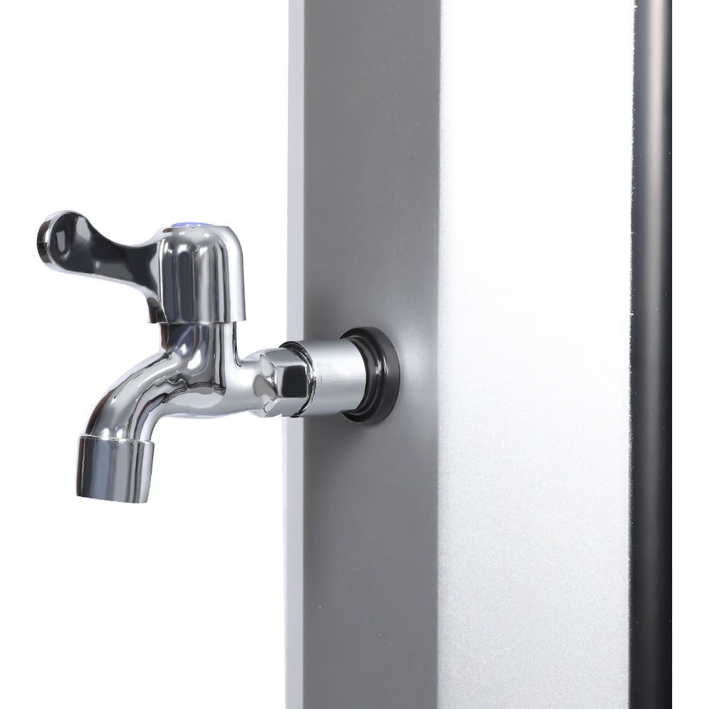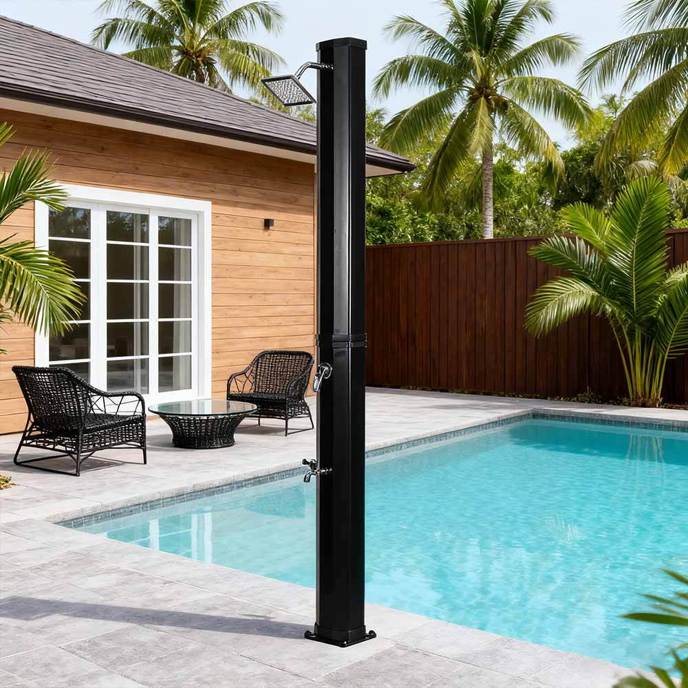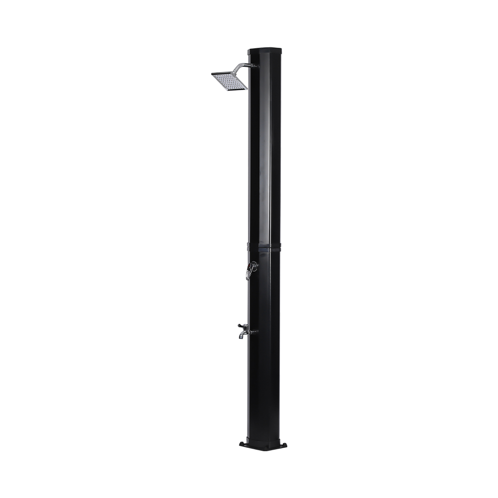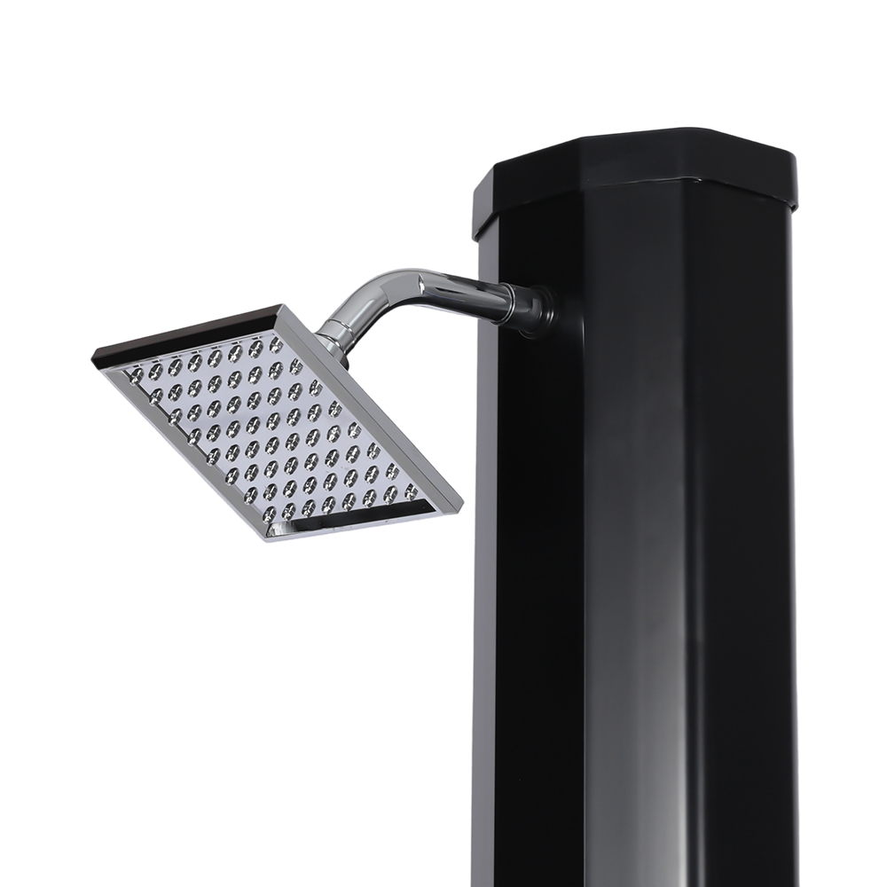This LY35L08 flexible and simple solar shower is designed for both versatility and practicality. Its wide rain showerhead not only swivels 360° for a comprehensive cooling effect, but also allows for flexible adjustment of the water flow to suit your preferences, creating a relaxing shower experience similar to that of a natural waterfall. Installation is simple, and the convenient foot-operated faucet allows for easy spot rinsing for added refreshment when a full-body shower isn't required. Furthermore, the shower unit features a standard garden hose connection for quick and easy filling, and a drain plug allows for easy emptying of the shower pipe before winter, ensuring safety and reliability when not in use and extending its lifespan.