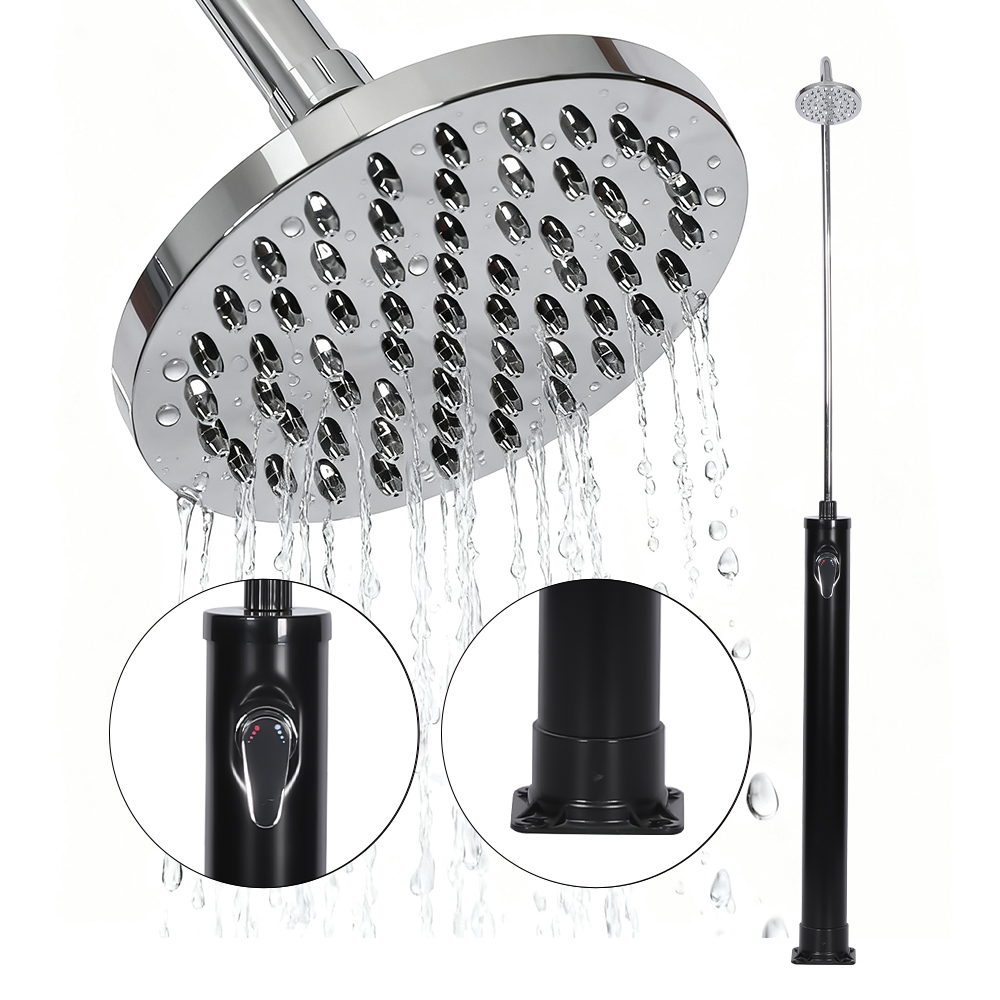 This LY08L02 8L swimming pools outdoor solar garden shower is a ideal solution for outdoor use, whether in the garden, by the pool, or on camping trips. Powered solely by sunlight, it features an 8-litre shower pipe that heats water up to 60°C, without the need for electricity. The system is designed to be user-friendly, with a single-lever metal mixer tap that blends warm water from the shower pipe with cold water from the garden hose, allowing for smooth and continuous temperature adjustment. The sturdy stainless steel base ensures the unit remains stable and securely in place, providing reliable performance for your outdoor water needs. Simply connect a standard garden hose to fill the shower pipe and enjoy hot water wherever you are.